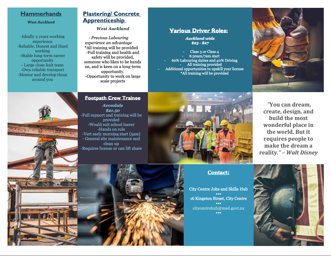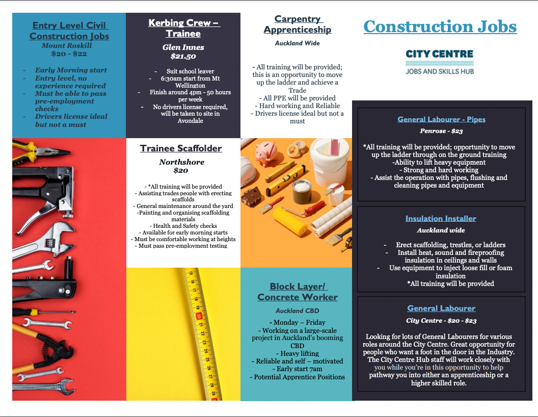 Below are the ‘hot jobs’ for the City Centre, Northern and Manukau hubs