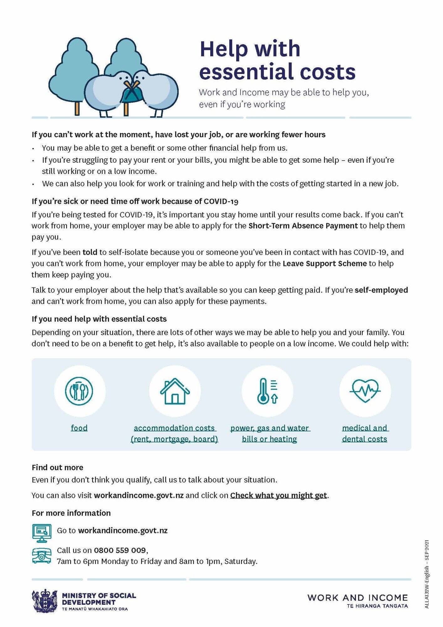 MSD offers employment support, hardship grants, in addition to income and food support. Ministry of Health will continue delivering health related support. Click below to read more.